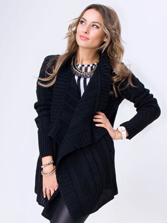 (02221)Elegantný čierny kardigán s dlhým rukávom v univerzálnej veľkosti