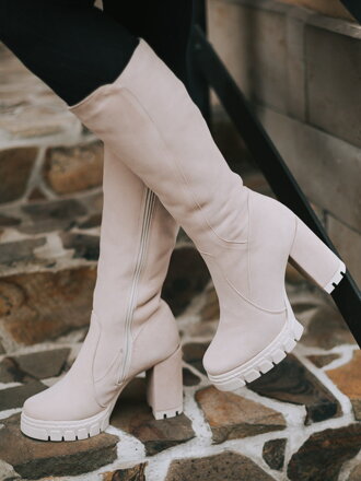 (15388)Dámske štýlové kožené vysoké čižmy model GRASSO v bielej farbe s čiernou podrážkou.