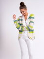 Krásny sveter v zaujimavom spojení farieb béžovej, hráškovo zelenej a petrolejovo zelenej s pekným geometrickým vzorom. Sveter je z pohodlného a príjemného materiálu na dotyk, má dlhé rukávy. Sveter je podobného strihu ako sako, takže ho mžte využiť aj ako sako. Je to dobrý doplnok v zime ako sveter pod bundu alebo aj cez leto sveter na prehodenie v chladnejších večeroch.