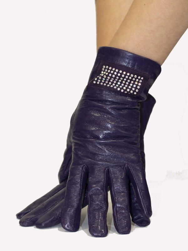 Tento model vo fialovom prevedení je klenotom medzi koženými rukavičkami, takže sa nemusíte báť že zaniknete v dave. Rukavice sú na zápästí z prednej strany zdobené štrasovými kamienkami, zoradenými v pravidelnom obdĺžniku, takže aj keď zakryjú náramok alebo hodinky, smi o sebe pôsobia ako šperk. Koža je navyše skvelým pomocníkov, pre šoférky, ktorým je neustále zima na ruky. Materiál krásne priľahne na volant a preto sa nemusíte báť, že sa Vám volant vyšmykne z ruky. Vnútro je podšité svetlo hnedým plyšom, ktorý je veľmi príjemný na dotyk. Kožené rukavice nie je vhodné prať v práčke, v prípade potreby očistiť vlhkou handričkou a nechať voľne vyschnúť. Ošetrovať výhradne prípravkami určenými na prírodnú kožu.