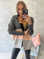 Trendy sveter vhodný pre dámy a mladé slečny. Trojfarebná kombinácia dodáva svetru neobyčajný vzhľad. Grafitová, ecru a púdrovo ružová farbe svetra sa ideálne hodí k rôznym prvkom oblečenia. Dámsky sveter s kapucňou využijete počas leta i zimy. Na rukávoch sa nachádzajú dlhšie patenty, ktoré sú v tvare netopiera. Vďaka kvalitnému a príjemnému materiálu si sveter obľúbi každá žena.