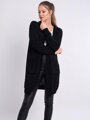 Čierny dlhší sveter alebo kardigán. Moderný pletený vzor. Dĺžka nad kolená.