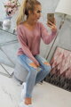 Dámsky sveter s V výstrihom 2020-15 tmavý ružový