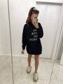 Pohodlná mikina v čiernej farbe nesmie chýbať v žiadnom ženskom šatníku. Predlžená mikina je v prednej časti doplnená o nápisy v bielej farbe. Skvelo sa kombinuje s cyklo kraťasmi, legínami, rifľami či len tak ako šaty. Mikinu obohacuje mohutná kapucňa.