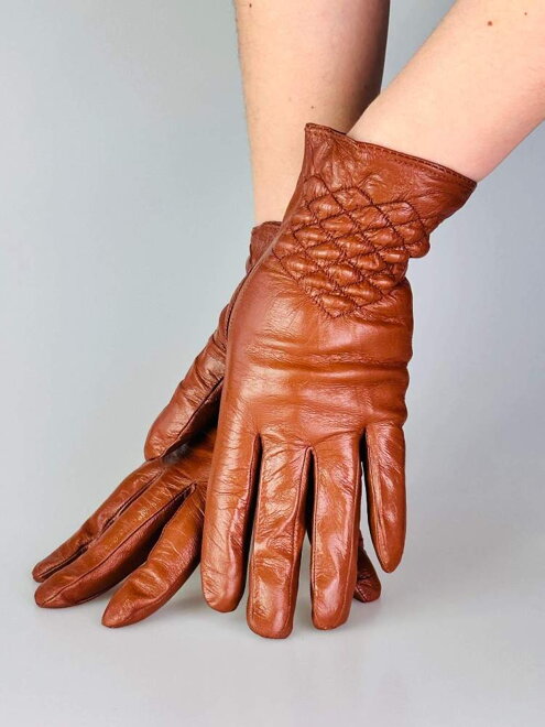 Kožené dámske rukavice, ktoré Vás zahrejú v chladnom počasí. Rukavice sú zdobené jemným prešívaním, z vnútornej strany sú zateplené umelou kožušinou. Dámsky módny doplnok, ktorý by nemal chýbať v šatníku žiadnej ženy. Potešte seba aj svojich blízkych praktickým darčekom.