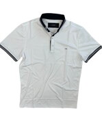 Pánske luxusné tričko s krátkym rukíávom v bielej farbe. Na čiernom golieri sa nachádzajú biele pásiky, ktoré dodávajú tričku jednoduchú eleganciu. Tričko je vyrobené z kvalitného materiálu v slim-fit štýle. Vhodné pre pánov ktorý obľubujú športovú eleganciu. Ľahko kombinovateľný kúsok s teniskami, riflami či kraťasami.