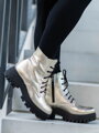 Dámsky športovo-elegantný kúsok v zlatej farbe, ktorý rozhodne nesmie chýbať v žiadnom ženskom šatníku. Členkové čizmy na šnúrovanie skvelo sedia na nohe. Nehryzú a netlačia. Čižmy Vám zabezpečia pohodlie, komfort a teplo kamkoľvek sa vyberiete.
