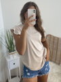 Univerzálny strih trička umožňuje jednoducho ju kombinovať s rôznymi kusmi oblečenia. Môžete ho nosiť ako každý deň v kombinácii s džínsami, kraťasami a teniskami, tak aj na špeciálne príležitosti v kombinácii s elegantnými sukňami či nohavicami. Bavlnená blúzka je perfektnou voľbou pre ženy, ktoré si cenia originálny štýl a vysokú kvalitu spracovania. Vďaka svojmu jedinečnému dizajnu a nadčasovej elegancii je nenahraditeľným šatníkovým prvkom, ktorý dodá charakter každému stylingu. Veľkosť je univerzálna a bude vhodná pre ženy, ktoré nosia veľkosť XS, S a M.