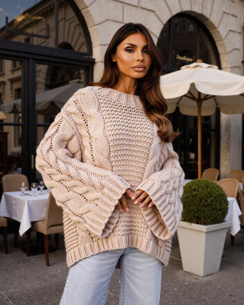Jeho široké rukávy sú neodmysliteľnou súčasťou ktorú si ihneď zamilujete. Sveter má voľnejší strih, ktorý krásne sedí na každej postave a umožňuje jednoduché vrstvenie s košeľou, tielkom či rolákom.