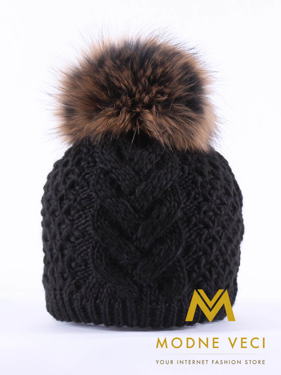 Čiapka pre ženu v čiernej farbe. Čiapka je zdobená veľkým a nádherným kožušinovým brmbolcom. Čiapka sa hodí na každú príležitosť.
