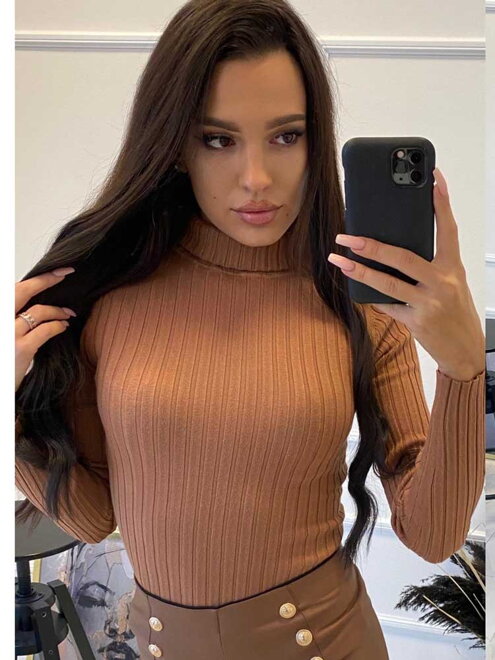 Vrúbkovaný dámsky rolák v chocco farbev BLK119-23