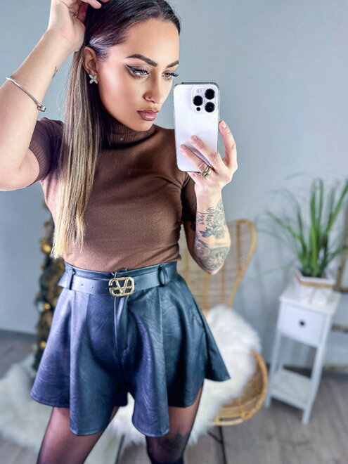✔ S koženými nohavicami a opaskom – Moderný a sebavedomý outfit.